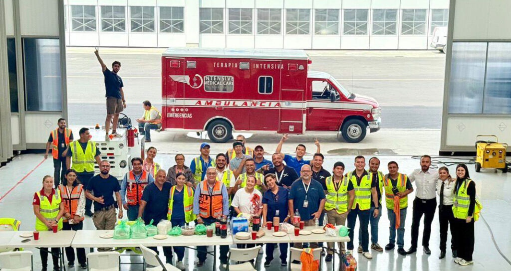 On the day of the drill, colleagues from across the company stepped into different roles, such as pilots, doctors, patients, companions, mechanics, and observers. It was inspiring to see so many areas come together: Flight Crew, Medical Team, Operations, Administration, Maintenance, Quality & Training, SMS, the Emergency Response Group (GEAE), Intensive Medical Care, SENEAM, and AFAC.