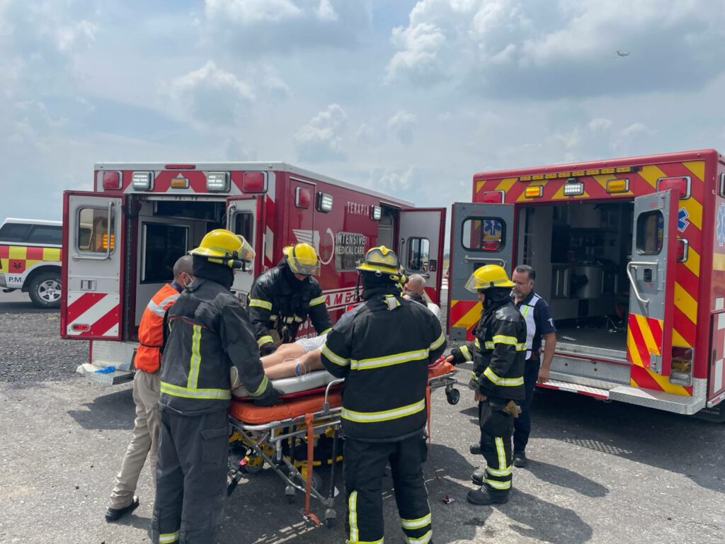 For two hours, one of the official runways (Runway 11 Left) was closed to make room for the simulation. GAP provided an aircraft where a controlled fire was set on the right engine, while “passengers” onboard evacuated following the correct procedures. The response protocols of AirLink Ambulance were fully activated. Our maintenance team, ground ambulance, operations, and dispatch joined forces with GAP’s SSEI, their ambulances, and the airport authorities who rushed to the scene.